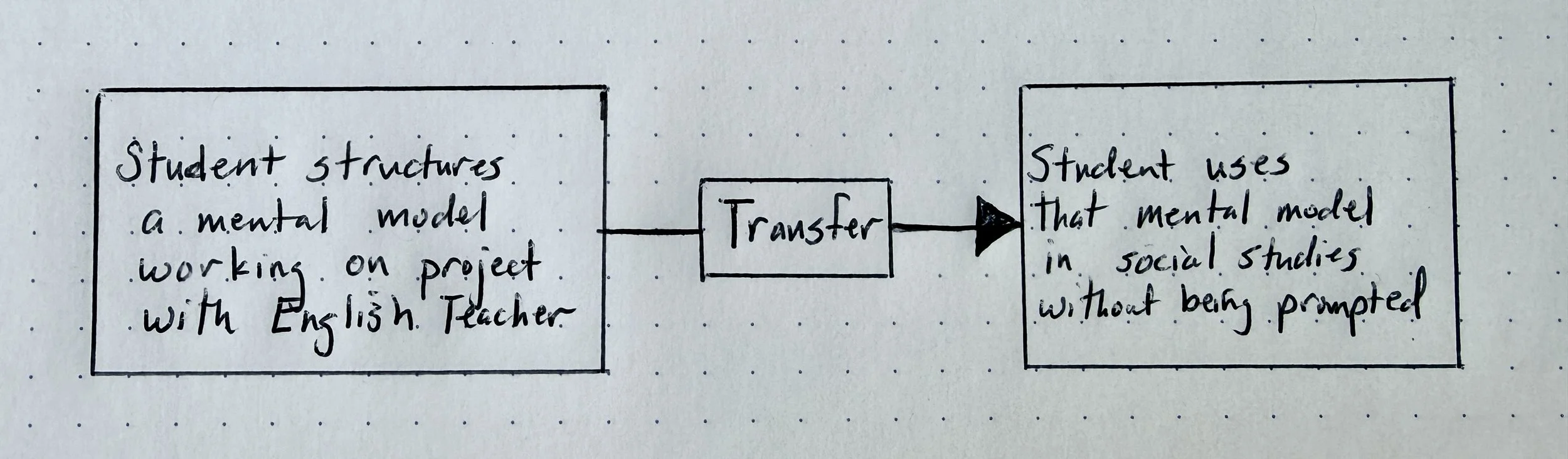 As a middle school Humanities team, my English teaching partner and I didn’t use the same content in our units. We used different content and looked for students to make connections between the content on their own. When they used content or skills from one class in the other class without being prompted, we had observable evidence of transfer.