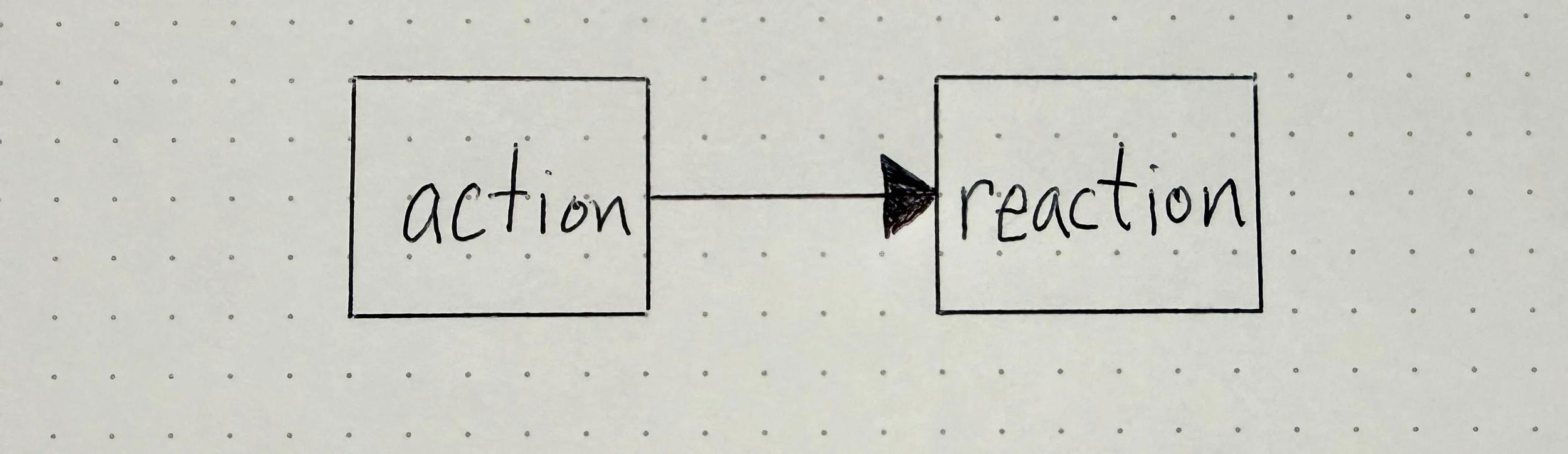 Map 1. Basic Relationship map. Relationships are interactions. Every Relationship is comprised of 2 elements, action & reaction. Changing perspectives on this map could change what we see; the arrow might go both ways, or switch directions. Reality is complex. While we cannot ever map everything, we can be explicit and accurate about the organization and information which improves our mental model’s alignment with reality.